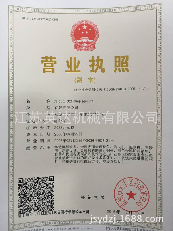 江蘇英達機械有限公司(原大豐市鑄造機械總廠)創(chuàng)建于1976年,是集研發(fā)、設計、制造、銷售及安裝服務于一體的高新技術企業(yè)。江蘇英達從事表面處理設備的研發(fā)和生產(chǎn)40年,獲得二十多項產(chǎn)品專利,主要生產(chǎn)金屬表面清理機械設備、砂處理造型成套設備等機械行業(yè)的七大系列產(chǎn)品。產(chǎn)品廣泛應用于鐵路、汽車、船舶、工程機械、冶金、軍工、醫(yī)藥等領域。
