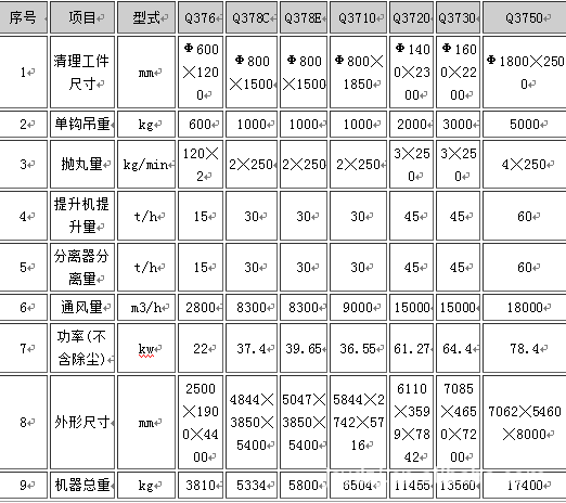 三、Q37系列拋丸清理機技術(shù)參數(shù)