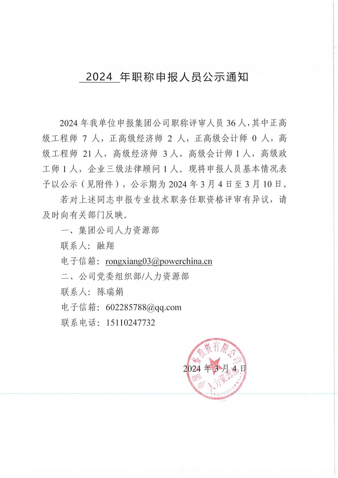 2024年職稱申報人員公示通知