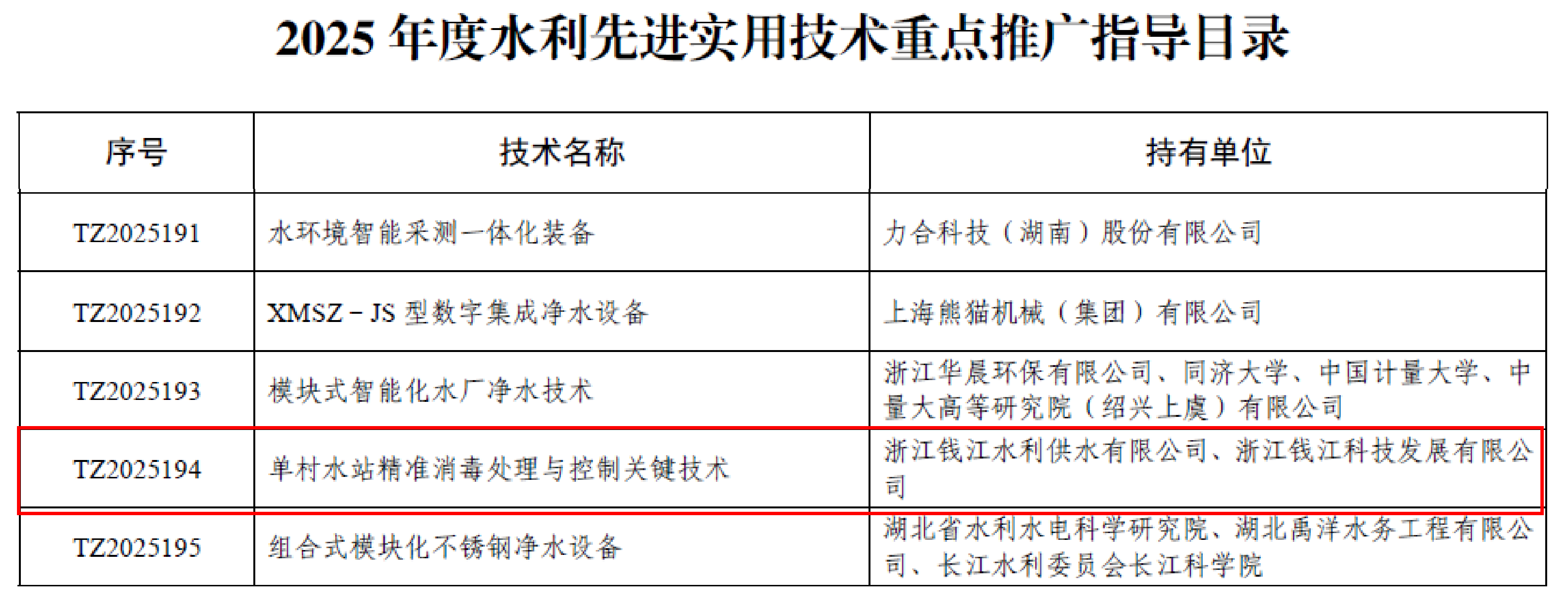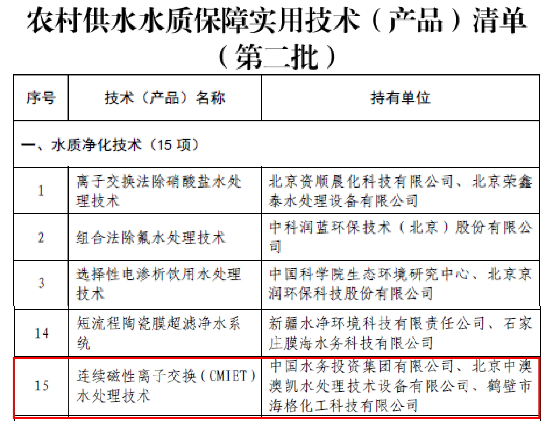 近日,水利部正式發(fā)布2025年《農(nóng)村供水水質(zhì)保障實(shí)用技術(shù)(產(chǎn)品)清單(第二批)》及《水利先進(jìn)實(shí)用技術(shù)重點(diǎn)推廣指導(dǎo)目錄》,中國(guó)水務(wù)研發(fā)的"連續(xù)磁性離子交換(CMIET)水處理技術(shù)"和"單村水站精準(zhǔn)消毒處理與控制關(guān)鍵技術(shù)"雙雙入選。