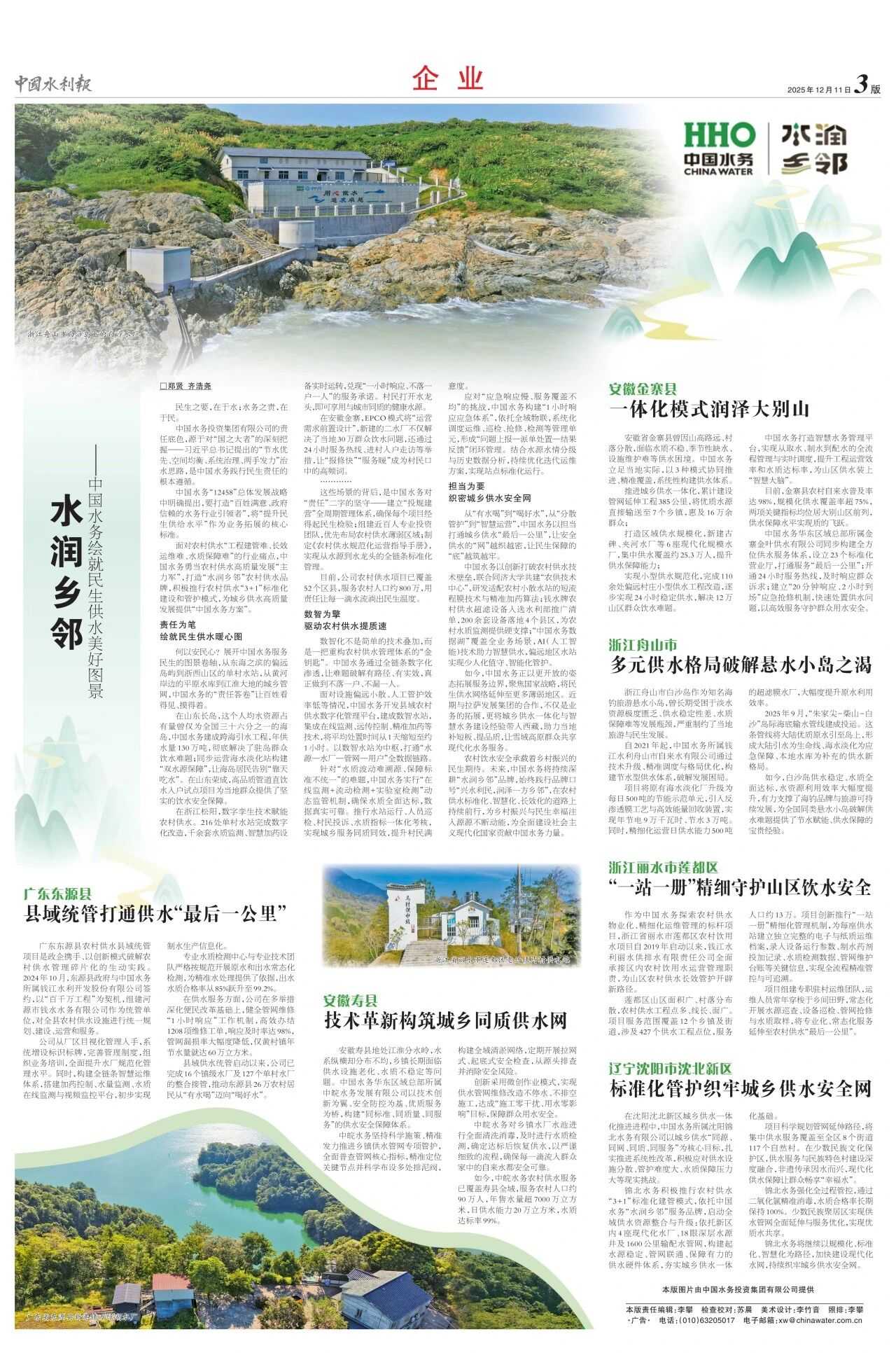 12月11日,中國水利報(bào)報(bào)道《水潤相鄰——中國水務(wù)繪就民生供水美好圖景》。