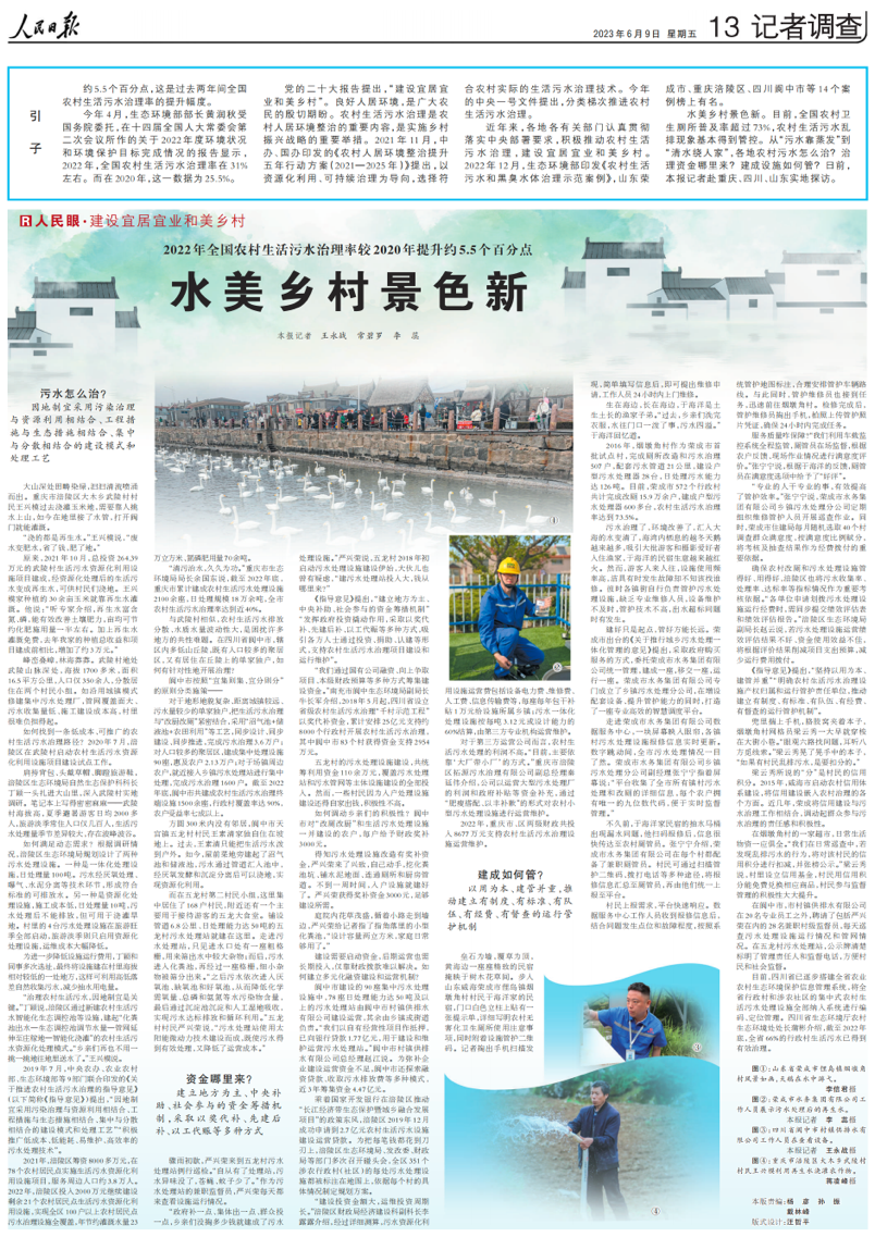 近日,《人民日?qǐng)?bào)》記者遠(yuǎn)赴山東省榮成市,采訪報(bào)道榮成水務(wù)農(nóng)村生活污水和黑臭水體治理示范案例和管理經(jīng)驗(yàn)。榮成水務(wù)以服務(wù)地方經(jīng)濟(jì)社會(huì)穩(wěn)定協(xié)調(diào)發(fā)展,助力鄉(xiāng)村振興戰(zhàn)略為己任,大力開展農(nóng)村污水治理和改廁管護(hù)工作,創(chuàng)出了四級(jí)聯(lián)動(dòng)、運(yùn)行高效、管理規(guī)范、保障有力的“榮成模式”,取得了“政府滿意、社會(huì)滿意、百姓滿意、職工滿意”的成效。