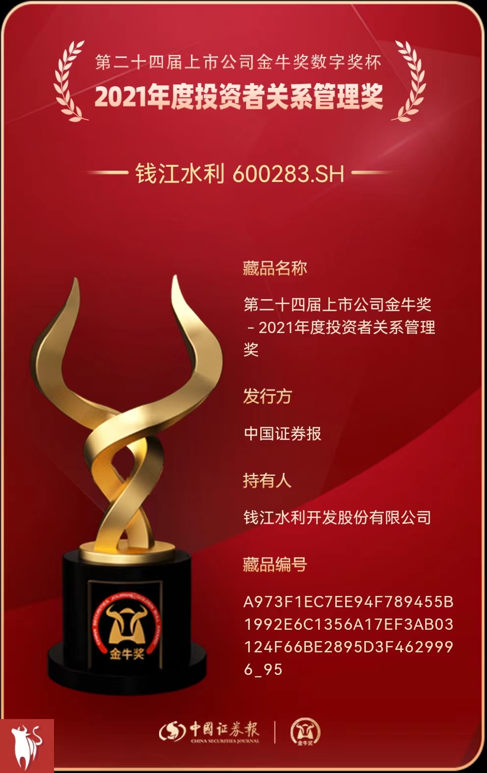 公司將以此次獲獎為契機(jī),進(jìn)一步優(yōu)化公司治理結(jié)構(gòu),夯實(shí)規(guī)范發(fā)展基礎(chǔ),提高信息披露質(zhì)量和透明度,提升投資者關(guān)系管理服務(wù)水平,不斷探索錢江水利高質(zhì)量發(fā)展之路。