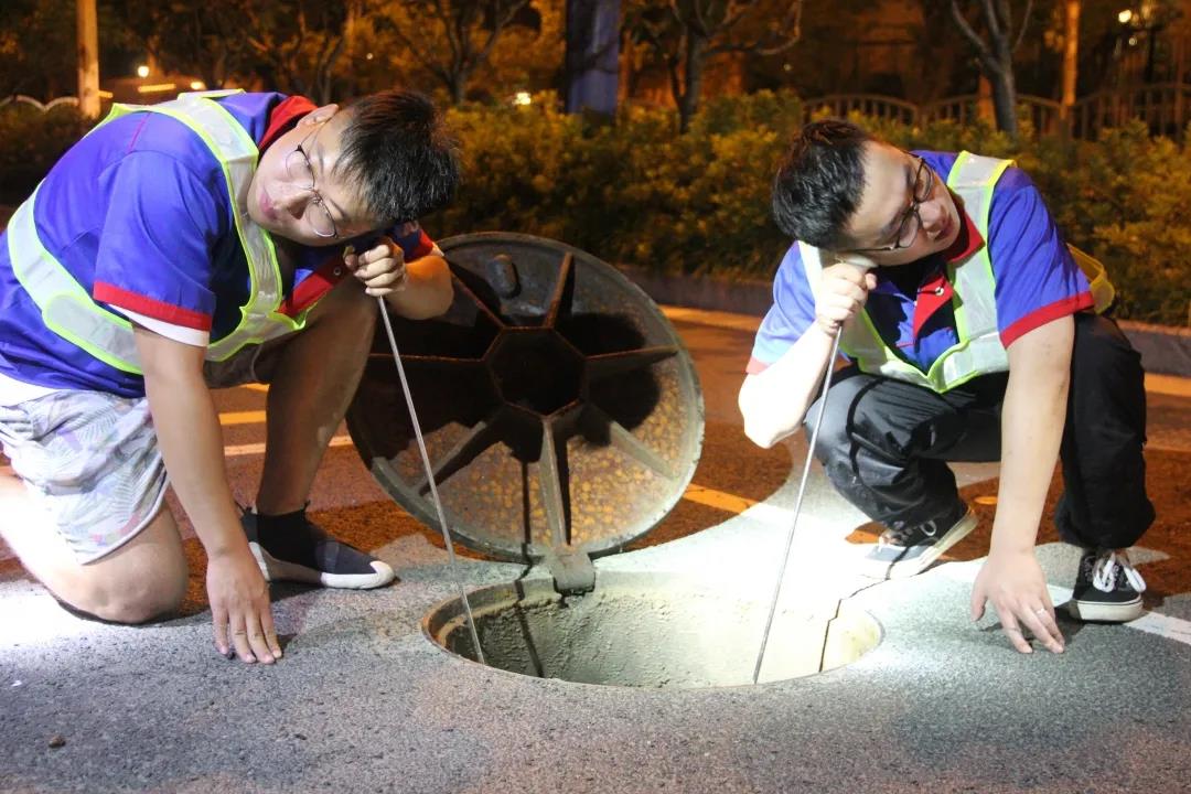 2020年6月8日晚10點,麗水公司檢漏班在麗水市汽車城附近巡檢時,發(fā)現(xiàn)了一處疑似漏點。班組成員隨即展開聽漏排查。打著手電,帶著鐵鉤,手持聽漏桿……深夜街頭,一幫人背著設(shè)備走走停停,時不時俯下身子,側(cè)耳傾聽。當(dāng)晚11點,借助電子聽漏儀及人工聽漏桿的共同判斷,成功定位漏點。而那張“最美工作照”就是那個時候拍下的。