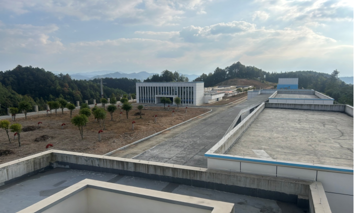 計劃覆蓋縣城周邊鄉(xiāng)鎮(zhèn)的中心水廠鐘鼓山集中供水工程廠區(qū)一角