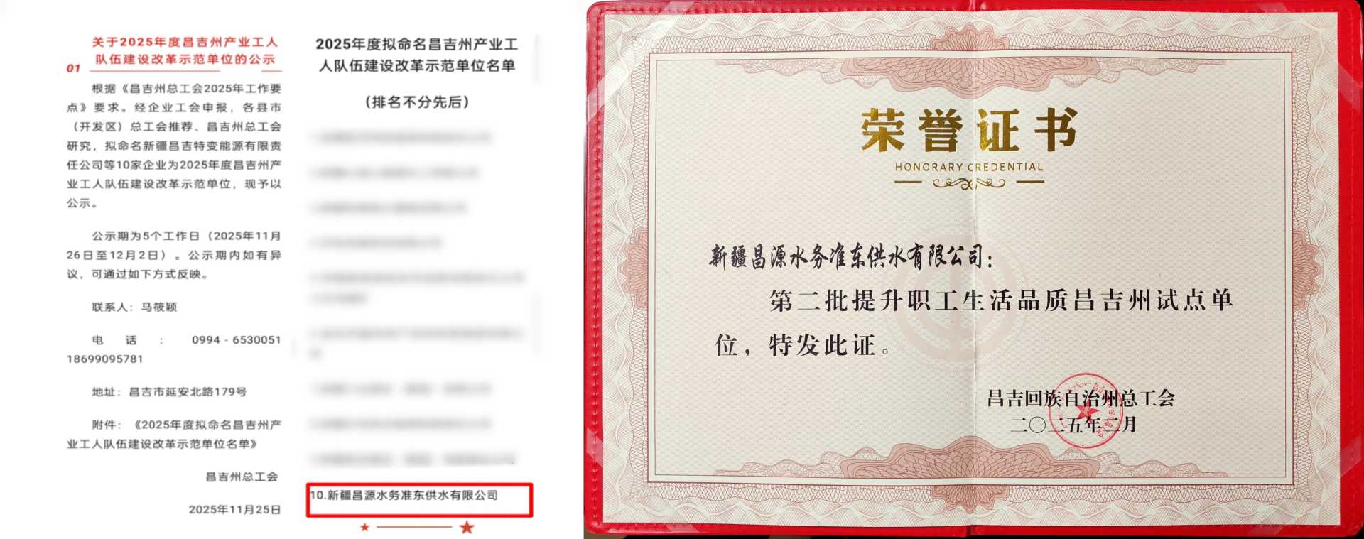 近日,新疆昌吉回族自治州總工會公示2025年度評選結(jié)果,昌源集團準東供水公司憑借在產(chǎn)業(yè)工人隊伍建設與職工生活品質(zhì)提升方面的扎實工作,成功獲評“2025年度昌吉州產(chǎn)業(yè)工人隊伍建設改革示范單位”,并入選第二批“昌吉州提升職工生活品質(zhì)試點單位”。