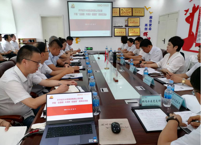 為全面貫徹落實黨的二十大精神和二十屆中央紀委二次全會精神,積極把黨建和黨風廉政建設工作向縱深推進,公司黨委和紀委聽取了各黨支部書記“2023年上半年黨建和黨風廉政建設工作匯報”;觀看了警示教育片《年輕有為莫忘為》;瀏園中心水廠黨支部副書記、廠長郭廷婷代表年輕干部對今后如何“扣好廉潔從業(yè)第一??圩印边M行了表態(tài)發(fā)言。紀委委員、副總工程師趙文通主持會議,黨委委員、紀委書記魏麗結合公司實際進行下半年工作部署,黨委書記、董事長耿建剛作總結發(fā)言。